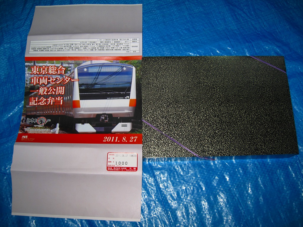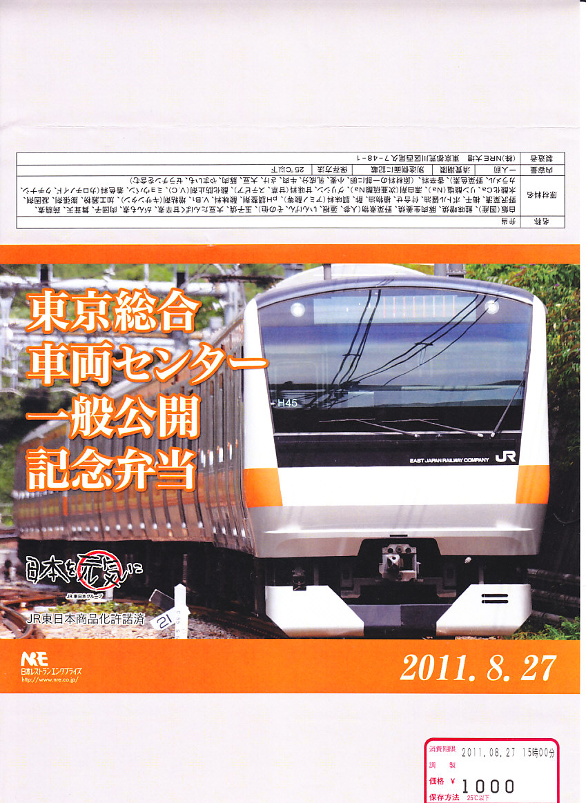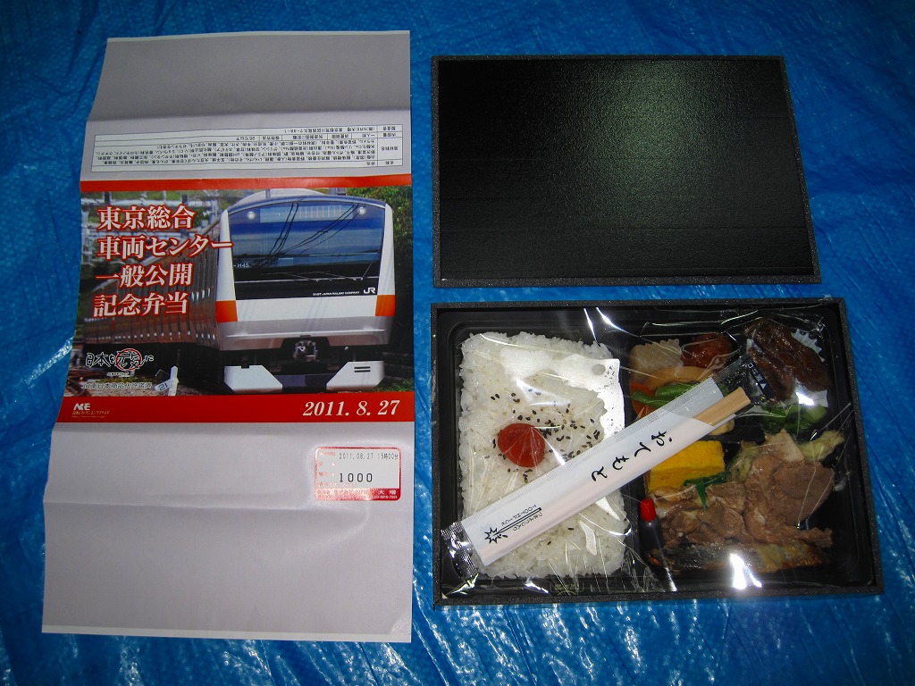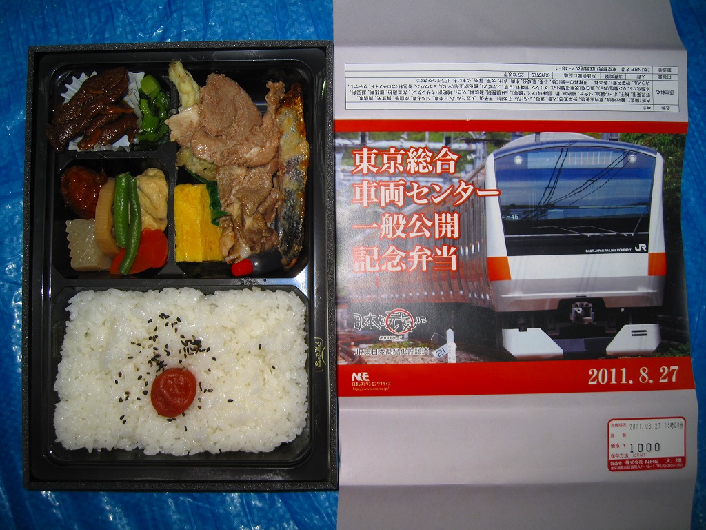 2011(平成23)年8月27日の鉄道工場公開イベントで販売されたお弁当。今年は3種類が用意された。掛紙はJR東日本のE233系電車の中央線バージョン。
