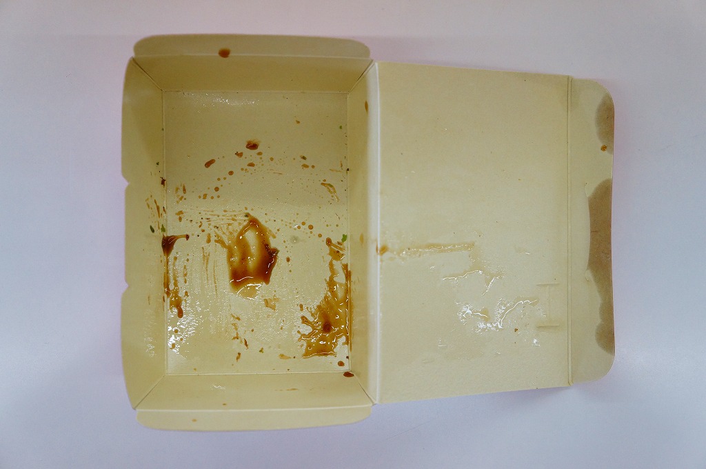 2013(平成25)年8月24日の鉄道工場公開イベントで販売された軽食。おそらくイベント向けの冷凍食品だろう。「箱のまま電子レンジで温めてお召し上がりください」と、ふたに書かれている。駅弁や記念弁当とともに売られていたので、買ってみただけ。
