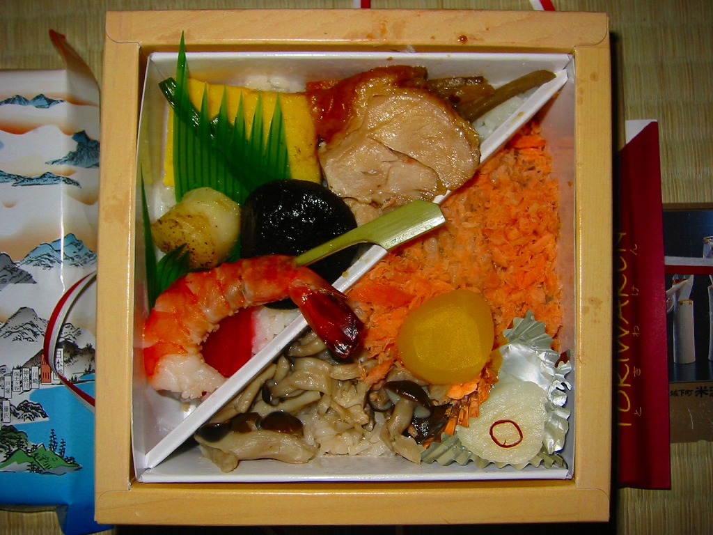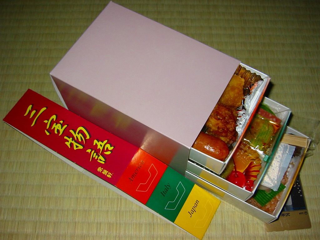 東海道新幹線の品川駅の開業に向けて、2003(平成15)年10月1日に発売。容器はボール紙製の三段引き出しで、とても弁当の容器には見えない。中身は上から「America」「Italy」「Japan」とあり、それぞれチキンや骨付ソーセージやフライドポテト、パスタや生ハムやサラダにオレンジやキウイ、栗と赤飯が入る。味は良いが中身の国籍不明も甚だしく、何を思ってこの構成となったのか聞いてみたい気がする。予約制だがまれに駅弁売店に置かれていることがある。この駅弁はもう販売されていないと思う。