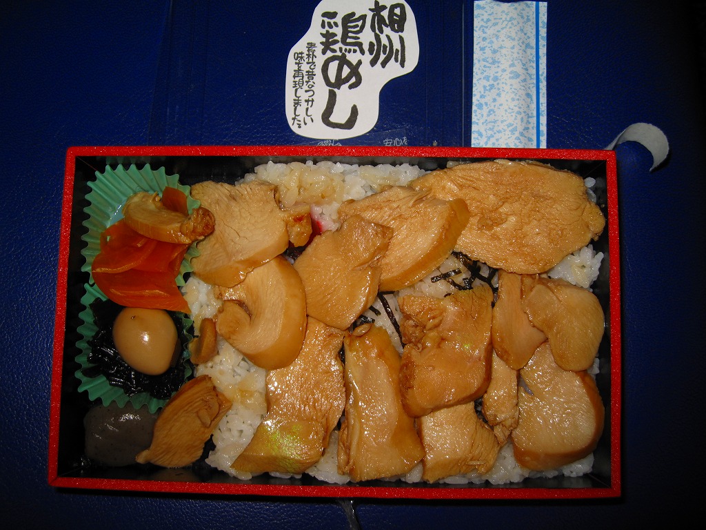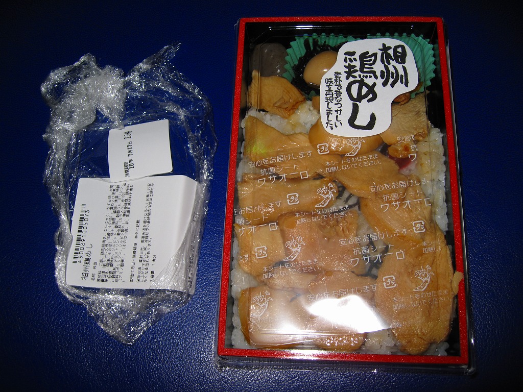 かつて東北上信越方面の旅客でごった返していた上野駅の大屋根の下で営業するこの高級スーパーマーケットチェーンでは、各地の駅弁や駅弁のような弁当も販売しており、ここの商品を駅弁と紹介するブログも少なくない。この商品は見た目に惣菜だが、調製元は小田原駅弁の東華軒であり、「相州」つまり相模という調製元所在地の国名を冠するため、なんとなく駅弁っぽい。味は醤油風味のササミがおいしかった。しかし「相州」の表現は、今では武蔵の国でも相模でもほぼ使われていないと思う。