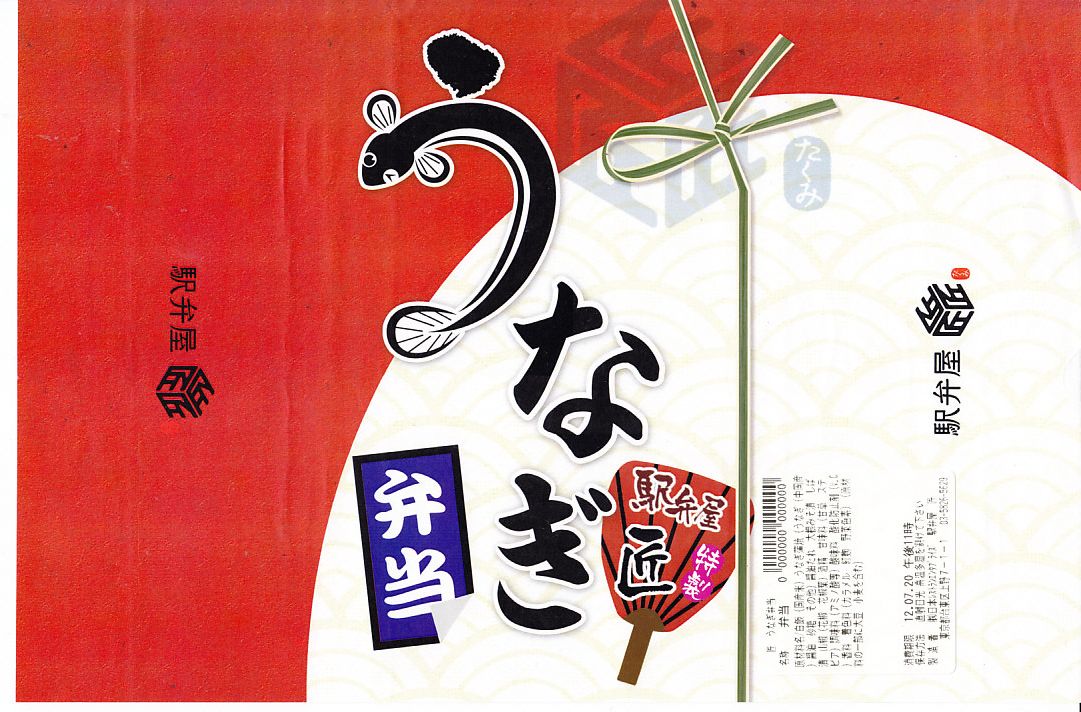 上記の「駅弁屋 匠」限定のうなぎ弁当の、2013年時点での姿。掛紙が横長から縦長に変わり、四角い容器が丸くなり、中身から柴漬けがなくなり、価格が60円上がった。それ以外は変わらない。