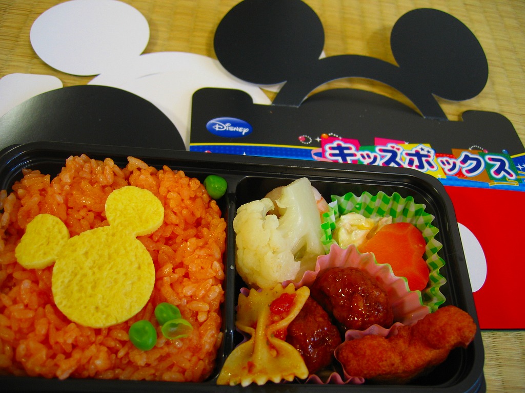 2008(平成20)年12月15日に発売。ネズミの男女のキャラクターを描いたり模したボール紙の容器を使用、その中にはキャラクターのシールとその台紙が入っている。プラ製トレーに収めた中身は、ケチャップライスにミートボール、チキンナゲット、コーンサラダ、ブロッコリーなどで、もものゼリーを別添。見るからにお子様弁当で、キャラクターを買って楽しむ駅弁。通常のNRE駅弁の販売駅と異なり、これは東京駅と新幹線車内販売と鉄道博物館で売られている模様。なお、京葉線舞浜駅前のテーマパークは弁当の持ち込みを禁止している。半年ほどで終売か。