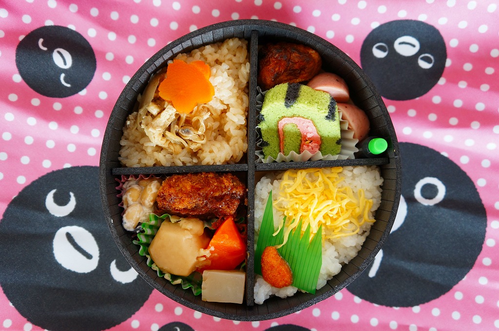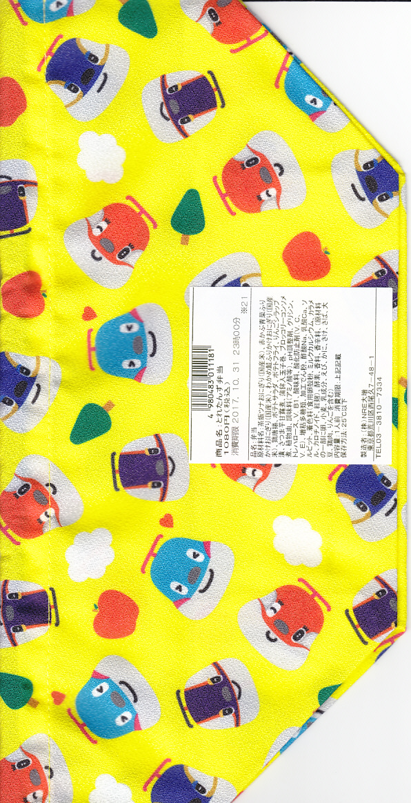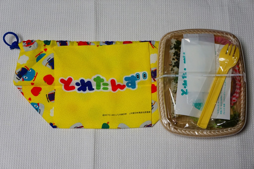 2017(平成29)年10月14日から、東京、新宿、上野、大宮の各駅と鉄道博物館で2万個を販売。JR東日本の子会社の広告代理店と出版社が、2015(平成27)年12月から展開するキャラクターのお弁当。東京駅弁「ポケモン弁当」の最近5年間くらいの姿と同じような、レモンイエロー色のきんちゃく袋には、そのキャラクターがたくさん描かれる。