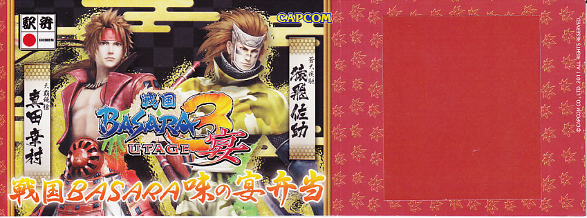 カプコンのWii及びプレイステーション3向けアクションゲーム「戦国BASARA3」の発売と同シリーズの5周年を記念して、2010(平成22)年8月16日から9月12日まで週替わりで各1,059個ずつが東京、上野、新宿、大宮の各駅で販売されたタイアップ駅弁。