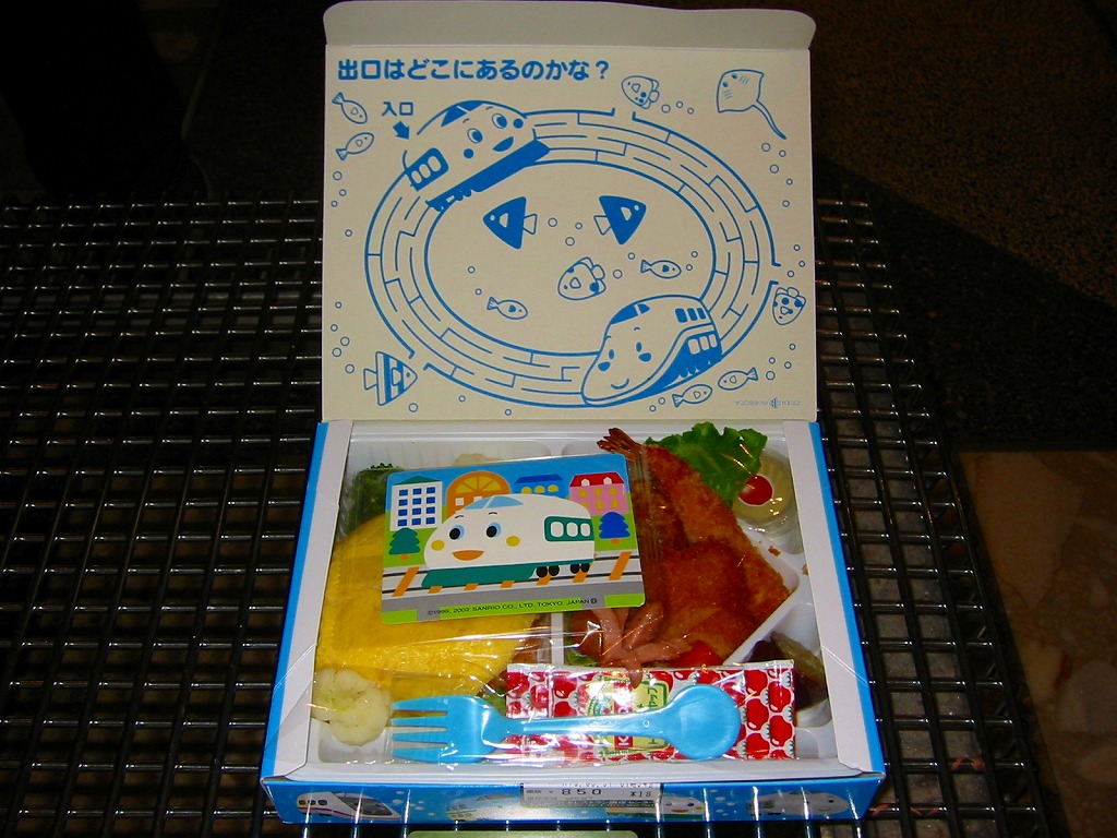 東京駅の子供向け駅弁。JR東日本の各新幹線車両のキャラクターを掲載した紙箱の中にトレーを入れる。中身はオムライスにハンバーグ・エビフライ・コロッケ・ウインナー・鶏唐揚・ポテトフライなどが入り、デザートはミニゼリー。かわいらしいフォークやキャラクターのステッカーが入っているその名や姿とは裏腹に、ピクルスが入っているなど分量も品質も価格も実は大人向けである。2005年頃までの販売か。