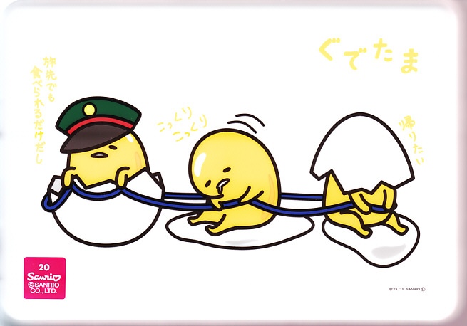 2015(平成27)年8月までに発売か。JR東日本リテールの東京駅、上野駅、大宮駅、品川駅、蒲田駅の弁当売店「膳まい」と、東京駅構内の土産物店「東京百貨」での販売。これらの売店で取り扱われる新幹線容器の駅弁と同じ構造をした、プラ製の折り畳み式容器には、サンリオのキャラクター「ぐでたま」が、鉄道の制帽や旅先で食べる表現を取り入れて描かれる。