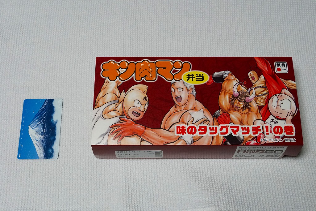JR東日本の「JR東日本キン肉マンスタンプラリー目指せ全駅制覇!編」の実施に合わせて、2019(平成31)年1月10日から2月28日まで、東京、品川、新宿、上野の各駅で販売。スリーブにはゆでたまごの漫画「キン肉マン」に登場する主要なキャラクターである、キン肉マン、テリーマン、バッファローマン、ラーメンマン、ミートくんが描かれる。