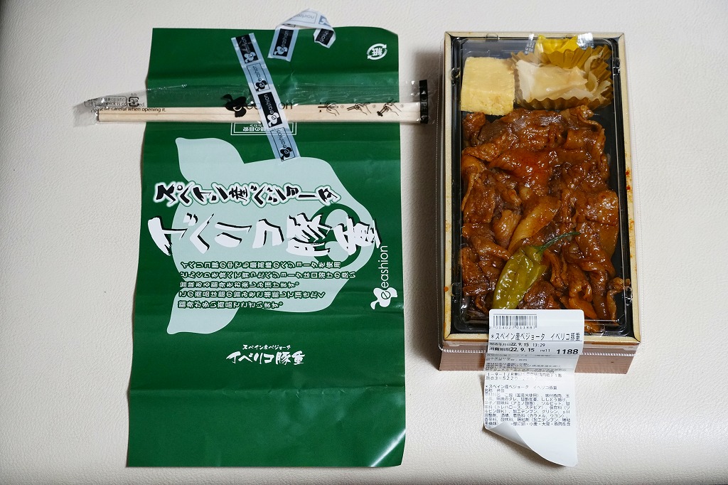 上記の弁当「スペイン産ベジョータイベリコ豚重」の、2022(令和4)年時点での姿。上記の2025年のものや、下記の2012年のものと変わらない。そんな息の長さは、まるで駅弁のよう。