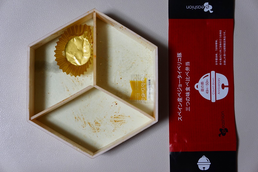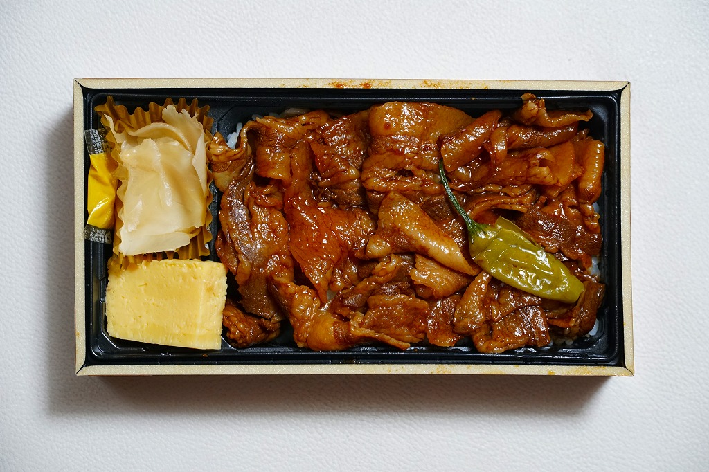 にゅるりとした光沢ある豚肉の食感や味付けは個人的に苦手な感じたが、調製から時を経ているようでも温かみが残り、これはうまい弁当だとは思った。2009年には一年間で8.9万個を販売し、以後も年に12万個以上を売るとされる。2019年にはここで10年連続売上第1位の弁当と紹介された。価格は2009年時点で1,000円、2014年時点で1,100円、2022年時点で1,188円、2025年時点で1,290円。今回は駅でなく商業施設のテナントで買ったら、1,150円だった。