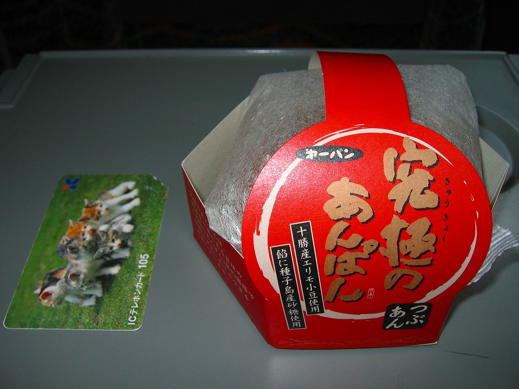 1990年代からコンビニなどで断続的に販売されている菓子パンで、今回は東京駅の新幹線ホーム上売店で売られていたもの。球に近い形状のあんパンをひとつ、和紙風の袋に詰めて、ボール紙のパッケージに組み込む。十勝産エリモ小豆と種子島産を使用したそうで、好物のつぶあんを選択したが、風味や食感に少々の締まりがあるかなと思った以外は、特段の感想はなし。