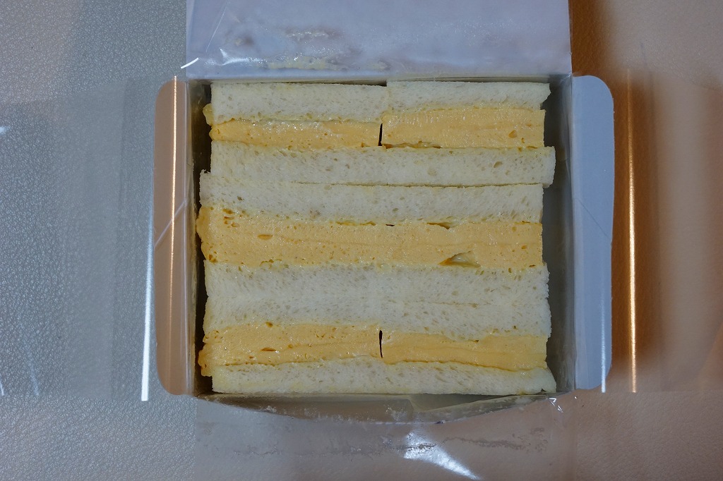 家庭料理でない市販品ではまず見られない、玉子焼のサンドイッチ。ふわふわのだし巻き卵はかなり甘く、しかしマスタード入りマヨネーズをパンと玉子の間に塗ることで、甘いだけでない味を入れている。ネット上ではミシュランだ芸能人御用達だ完売続出だの文言が並ぶが、東京駅で買うのは難しくない。