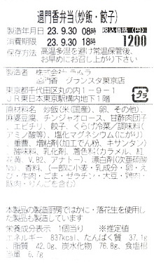 東京駅の商業施設「グランスタ」地下1階に入居するテナント「過門香(かもんか)」で買えた惣菜弁当。平たく浅く二重底な長方形のプラ容器に、炒飯、麻婆豆腐、チンジャオロース、甘酢肉団子、エビチリ、餃子、くらげ冷菜を薄く盛り付ける。駅弁にはとてもみえないが、現地では東京駅限定のお弁当として電飾広告で宣伝されており、東京駅弁と紹介するネットメディアもある。高めの価格は駅弁らしい中華弁当。調製元は東京日本橋の外食事業者が2000年から東京都心でチェーン展開する中国料理店。調製元が2024年1月5日限りで東京駅から撤退し、今は駅では買えない。