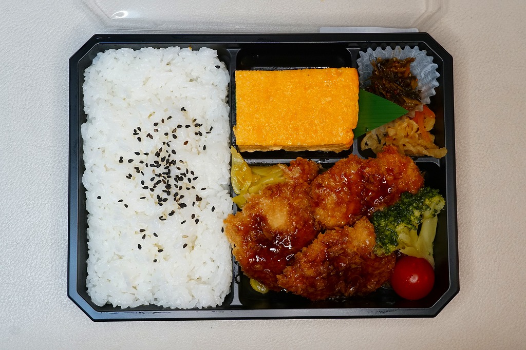 2018(平成30)年までに発売か。白御飯とチキンカツとカレーキャベツと玉子焼と、その他付合せのお惣菜。お米には秋田県大潟村産あきたこまちを、チキンカツには宮崎県産銘柄鶏夢創鶏(むそうどり)のムネ肉を、玉子焼には自社ブランド卵「塚だま」を使用するのだという。駅弁として認識されることのない、デパ地下弁当や仕出し弁当だと思うが、これがファベックス展の「惣菜・べんとうグランプリ2019」の駅弁・空弁部門で金賞となった、つまり駅弁や空弁として考えられているようなので、購入してここに収蔵した。
