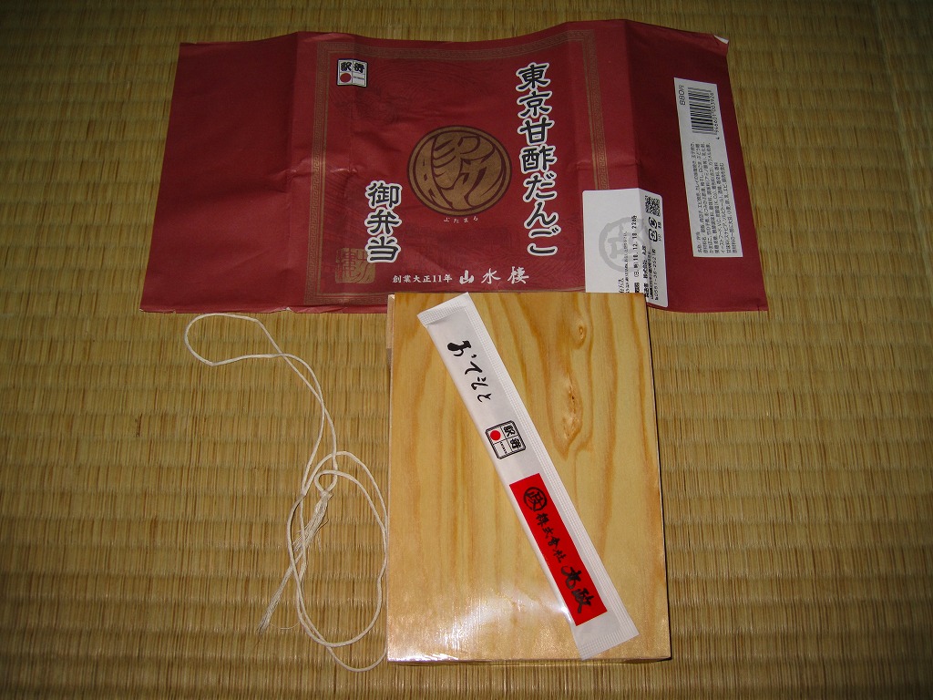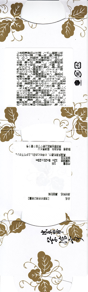 2012(平成24)年3月16日の調製である東京駅弁の掛紙。上記の2011年のものと比べて、調製元店舗の表記位置が食品表示ラベルから掛紙本体へ移動している。