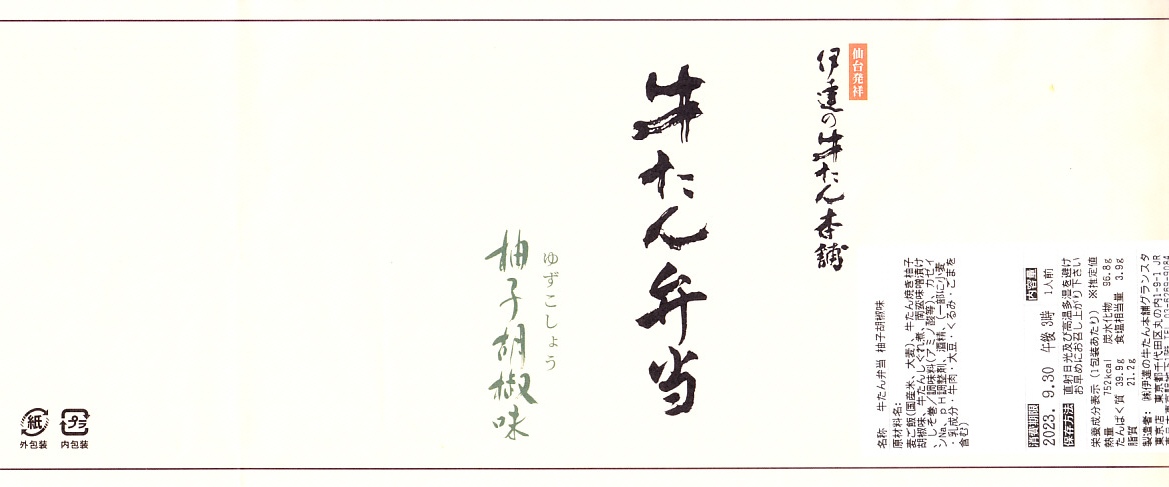 宮城県内と東京都心でチェーン展開する牛たんレストラン・牛たん商品店の商品であり、東京駅の駅弁とは考えにくいが、牛たん焼に柚子胡椒の味付けをしたこの弁当は、東京駅限定で販売する商品のようで、現地ではそのように電飾広告で宣伝され、人気の東京駅弁と紹介する記事もある。いずれの地でも人気の牛タン専門店の弁当であり、肉の厚みと風味は東京駅弁や仙台駅弁の牛たん弁当を上回るとも思う。