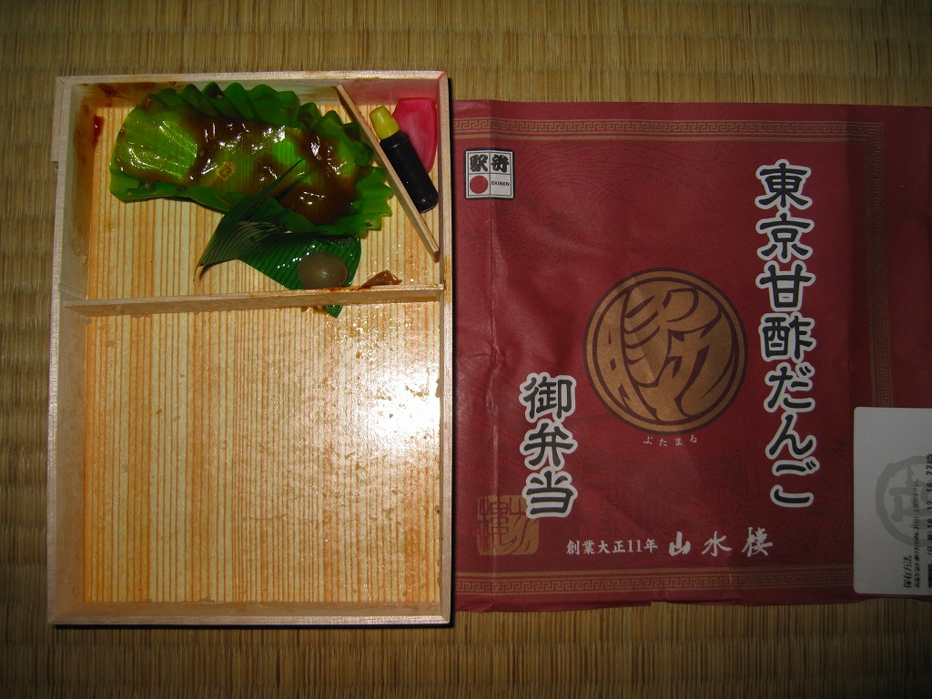 こういう牛肉の目張り飯は、最近では各地で駅弁やジャンクフードになっており、これをまずいという人はいない。しかしもはや創作という感じはしないし、冷たい酸味が合わないし、なんといってもベタベタして道中の食事にとても向かない。デパ地下で買って自宅で食べるべき商品。2016(平成28)年2月のニッポンの駅弁の閉店後も、2018年頃まで東京駅で販売された模様。