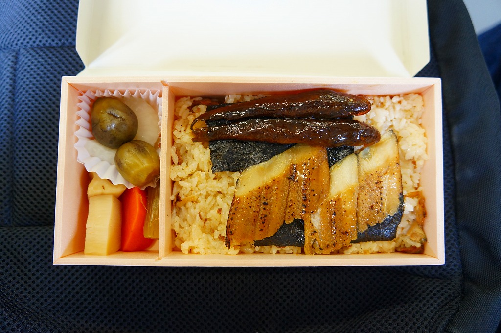 東京駅の名物駅弁「深川めし」の、2017(平成29)年時点での姿。2013(平成25)年のリニューアルで、2021(令和3)年9月までの販売。茶飯の上に海苔と煮アナゴと、「深川煮」なるアサリとゴボウと油揚げなどの煮物を載せてワケギを振り、小ナス漬、ベッタラ漬、玉子焼、ニンジンとコンニャクとインゲンの煮物を添えるという内容だった。リニューアル前よりも柔らかく美味くなったとも思うし、ハゼ甘露煮の省略を嘆く意見もあった。