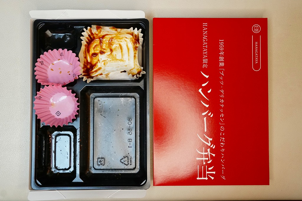 2020(令和2)年3月14日に、「一流料理人が作るバリュー弁当」の触れ込みで、「幕の内弁当」「海苔弁当」「焼肉弁当」とこの「ハンバーグ弁当」の4種類が、赤いパッケージと940円で発売されたもの。これは「1959年創業「ブッツ・デリカデッセン」のこだわりハンバーグ」なのだとか。白飯、ハンバーグ、フライドポテトとスパゲティ、コーンとウインナー、きんぴらごぼう、キャベツ炒めを詰めた、まるで幕の内弁当のようなハンバーグ弁当。調製元は東京都近郊の各地に「ブッツ・デリカデッセン」などの惣菜店を出す営業者そのもので、監修でなく調製で駅弁にかかわっている。2021年限りでシリーズごと、ひっそりと終売か。