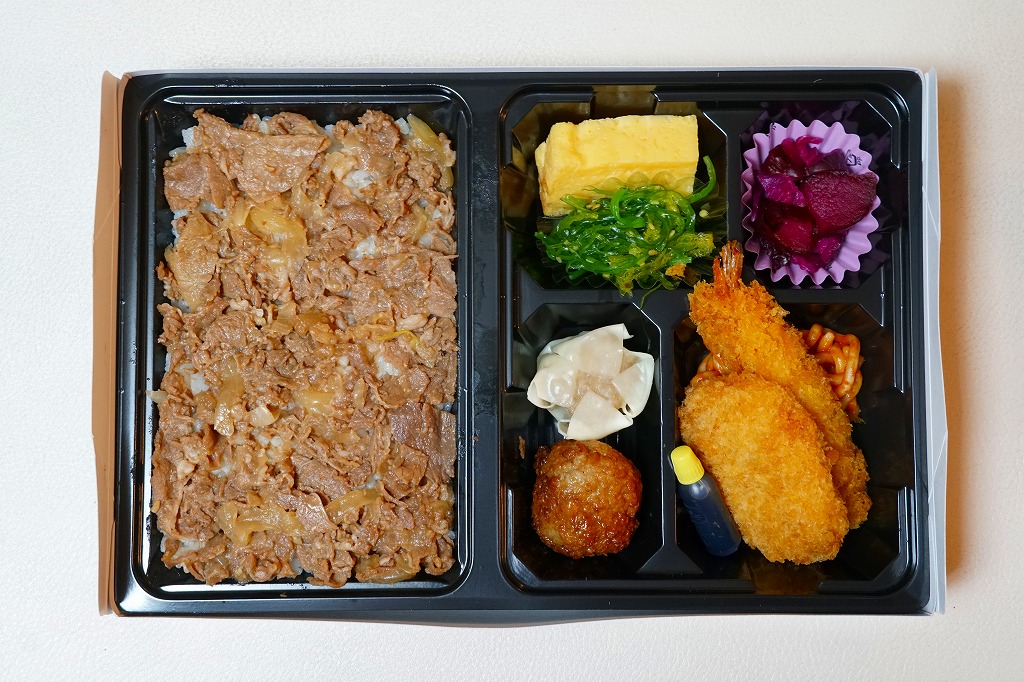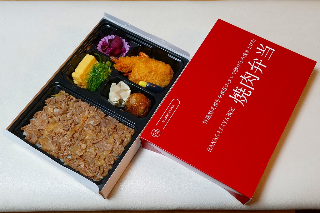 2020(令和2)年3月14日に、「一流料理人が作るバリュー弁当」の触れ込みで、「幕の内弁当」「海苔弁当」「ハンバーグ弁当」とこの「焼肉弁当」の4種類が、赤いパッケージと940円で発売されたもの。これは「神田明神下・雅 総料理長一押し」なのだとか。白飯をタマネギと牛肉で覆い、野菜コロッケ、エビフライ、スパゲティ、焼売、肉団子、玉子焼、ごまわかめ、柴漬けを添える。焼肉弁当を名乗るほど、肉に量や味があるわけではない、牛肉幕の内駅弁。2021年限りでシリーズごと、ひっそりと終売か。