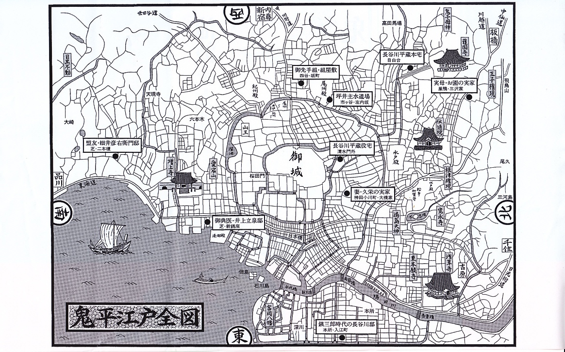 この「2」は「くめ八弁当」の名前が付き、その掛紙には文庫本の「鬼平犯科帳2」と同じ絵柄が使われる。裏面には「鬼平江戸全図」なる作品の舞台の地図があり、登場人物の相関図を別添するのは「1」と同じ。中身はカボチャ天を載せた鶏飯と、海老天を載せたアサリ飯と、鶏つくねと鶏照焼の串、煮物などのおかず。密偵小房のくめ八が見張りの前に腹ごしらえだそうな。2021年3月に「3」と「4」が出たので終売。