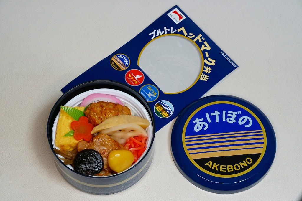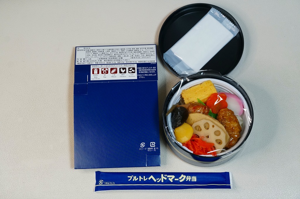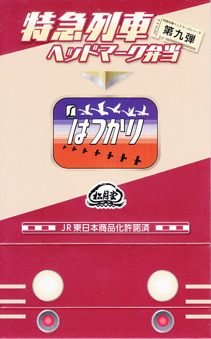 2019(平成31)年2月5日にJR東日本リテールネットが、東京、品川、上野、大宮、蒲田の各駅の弁当売店「膳まい」で発売した、特急列車ヘッドマーク弁当の第9弾。今回はかつて上野駅と青森駅を結んだ在来線特急列車「はつかり」のヘッドマークの絵柄を、弁当箱の上面に印刷した。