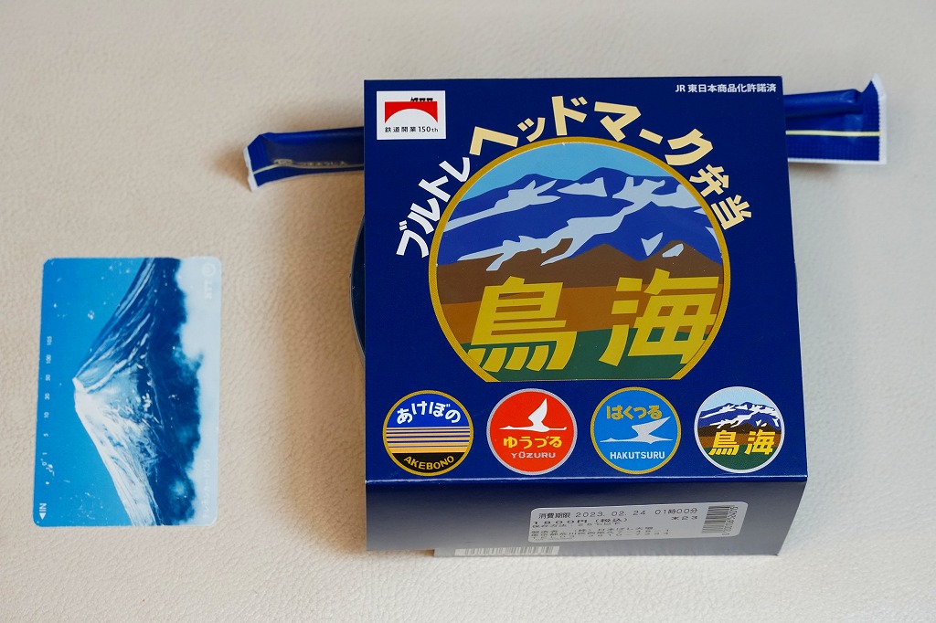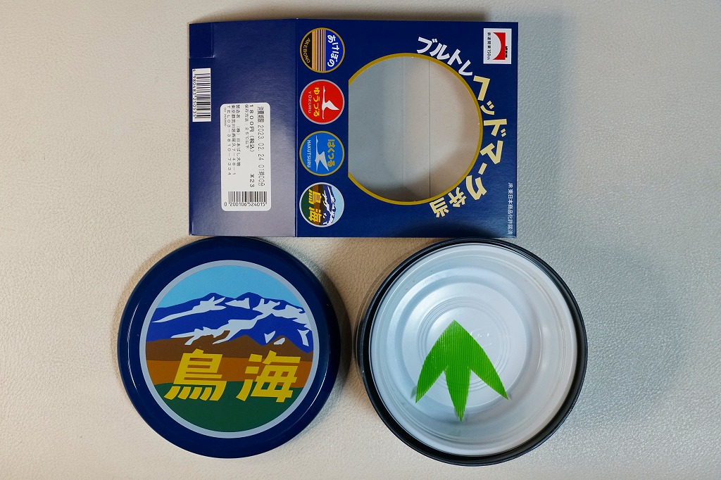 2023(令和5)年2月16日に、スリーブと中身と値段が同じ「あけぼの」「ゆうづる」「はくつる」「鳥海」の4種類が突然に登場。これは「鳥海」で、かつて上野駅と青森駅を羽越本線経由で結んだ寝台特急列車「鳥海」のヘッドマークが、丸いプラ容器に描かれる。それ以外は上記の「はくつる」と同じ。「鳥海」がブルートレインや寝台列車だったか、と思われるのは正しく、これがブルトレだったのは1990年9月から1997年3月まで。昭和50年代のブルートレインブームの当時は昼間の急行や特急だった。