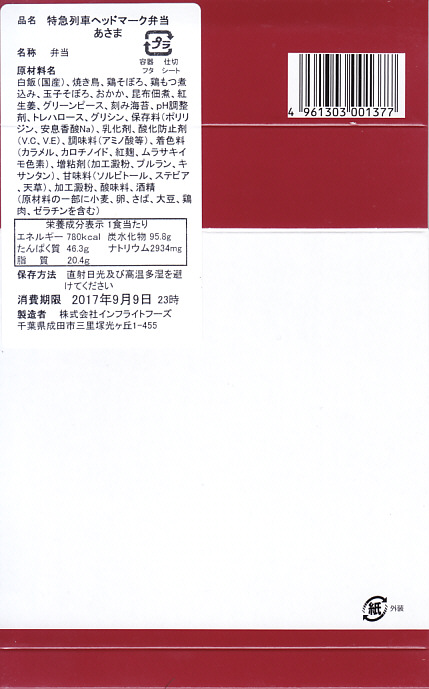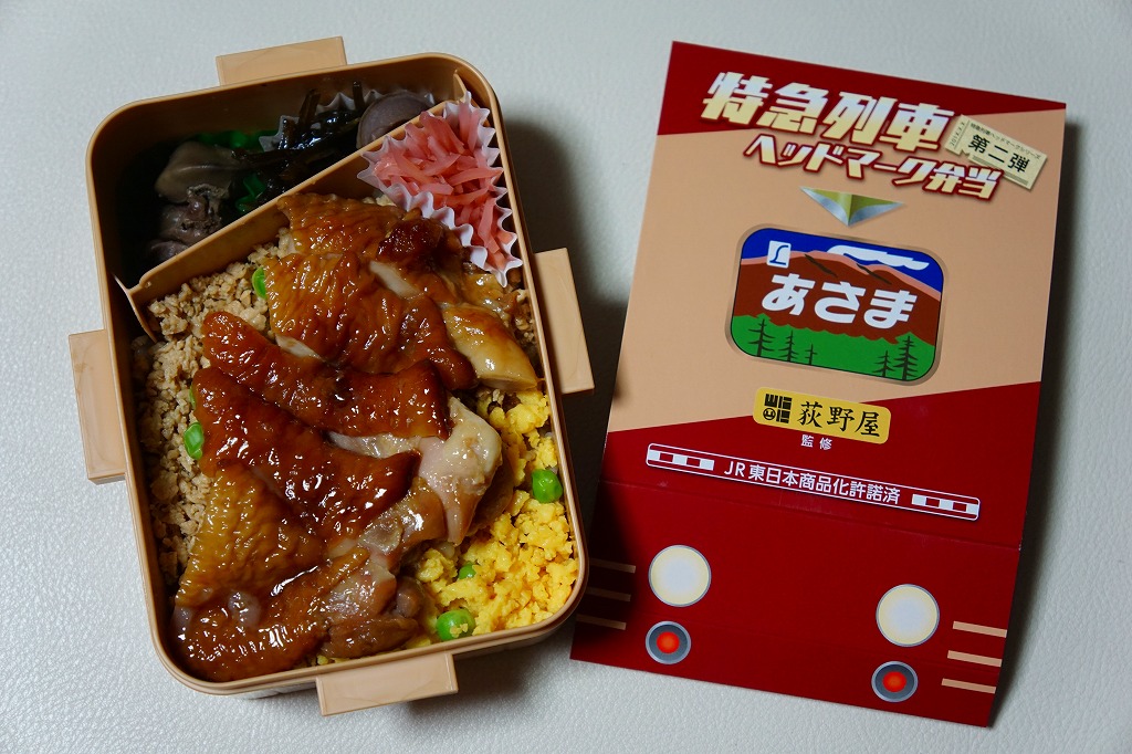 2017(平成29)年8月19日にJR東日本リテールネットが、東京、品川、上野、大宮、蒲田の各駅の弁当売店「膳まい」で発売した、特急列車ヘッドマーク弁当の第2弾。1997(平成9)年まで上野駅と長野駅などを結んだ特急列車「あさま」のヘッドマークの絵柄を、弁当箱の上面に印刷した。