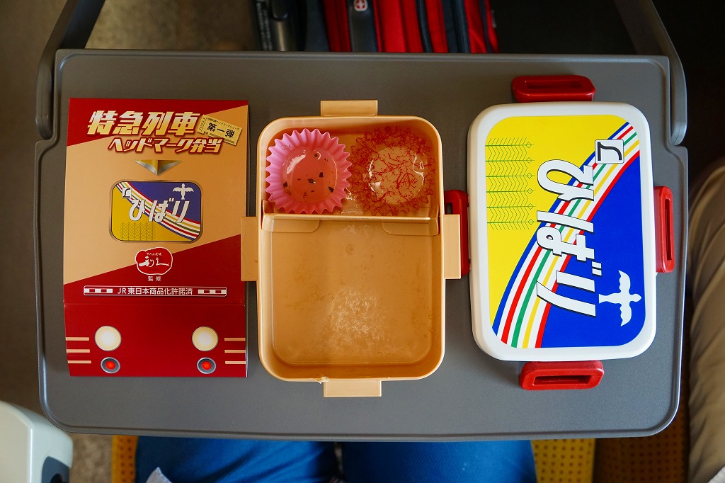 2020(令和2)年3月14日にJR東日本リテールネットが、東京駅の弁当売店「HANAGATAYA」、上野駅の弁当売店「膳まい」、水戸駅と勝田駅のコンビニ「NewDays」で発売した、特急列車ヘッドマーク弁当の第12弾。この頃は新型コロナウイルスの蔓延が日本国内でも起こり、4月には政府が緊急事態宣言を発令、メディアを占領し旅行客が消えた中で発売を見逃し買い逃していたら、翌年1月の駅弁大会で復刻販売してくれた。