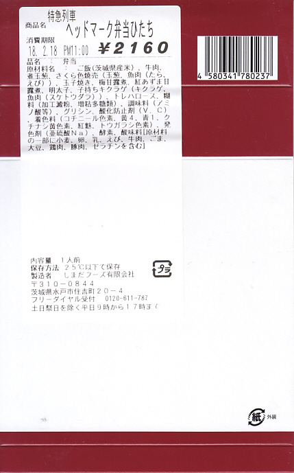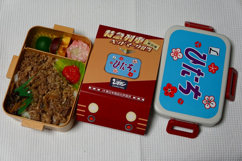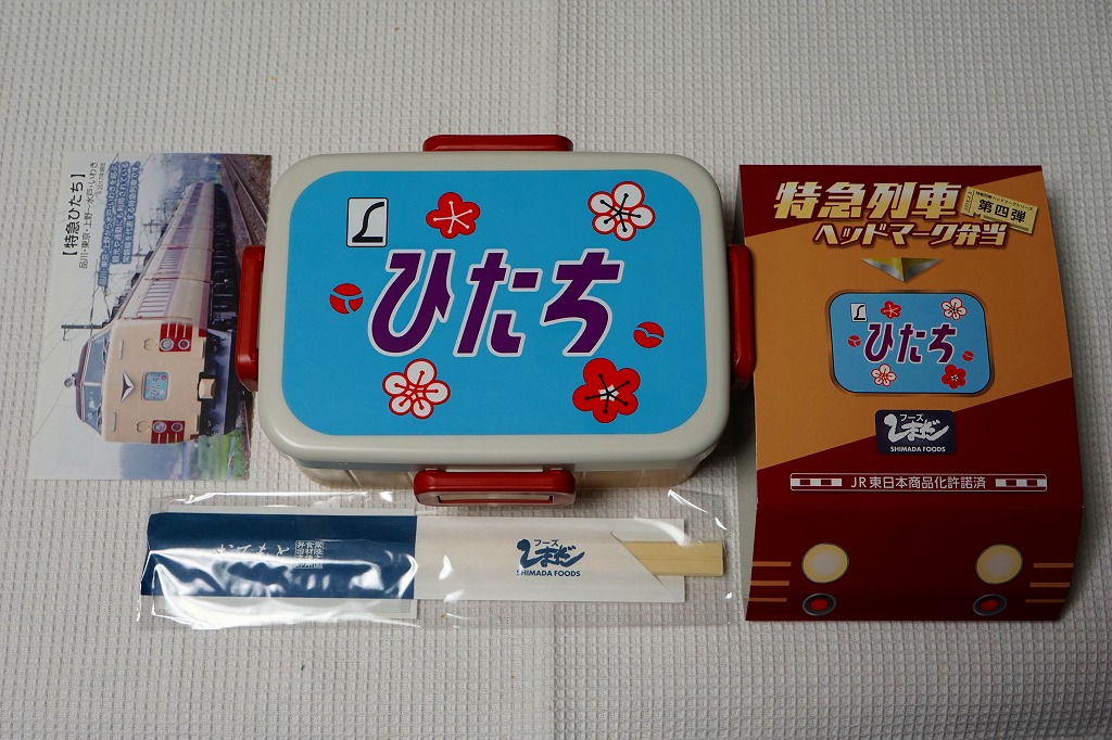 2018(平成30)年2月5日にJR東日本リテールネットが、東京、品川、上野、大宮、蒲田の各駅の弁当売店「膳まい」と水戸駅と勝田駅で発売した、特急列車ヘッドマーク弁当の第4弾。1998(平成10)年まで上野駅と水戸駅などを結んだ特急列車「ひたち」のヘッドマークの絵柄を、弁当箱の上面に印刷した。