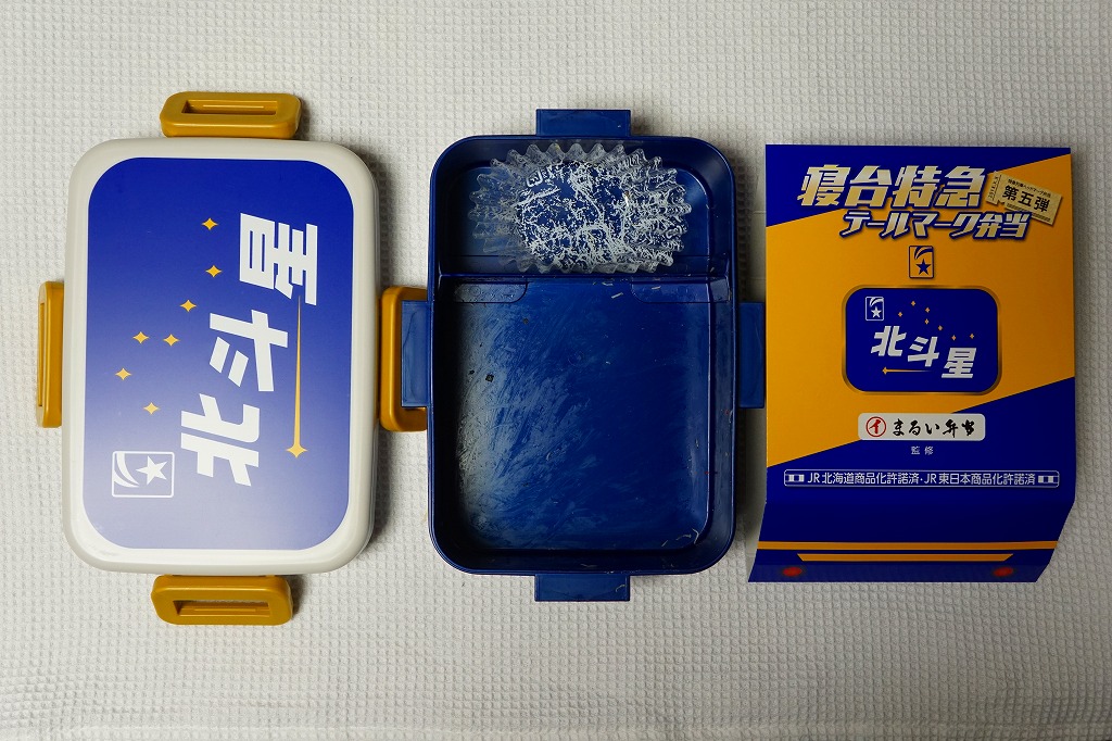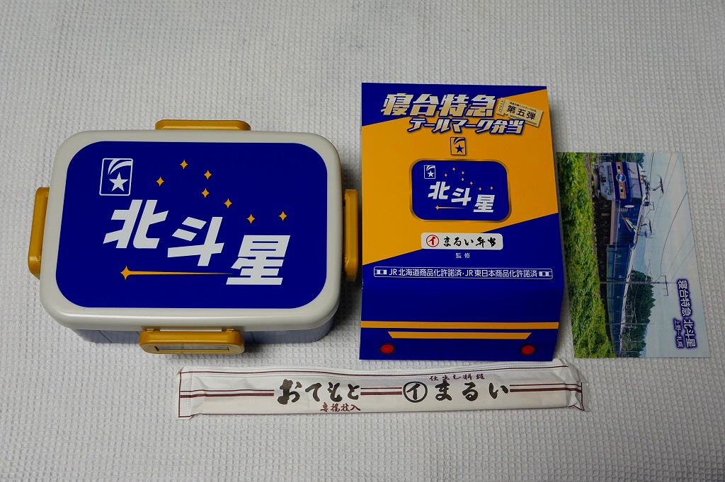 2018(平成30)年4月20日にJR東日本リテールネットが、東京、品川、上野、大宮、蒲田の各駅の弁当売店「膳まい」と仙台駅で発売した、特急列車ヘッドマーク弁当の第5弾。今回は2015(平成27)年まで上野駅と札幌駅を結んだ寝台特急列車「北斗星」のテールマークの絵柄を、弁当箱の上面に印刷した。これに伴い表題を「特急列車ヘッドマーク弁当」から「寝台特急テールマーク弁当」に変更している。
