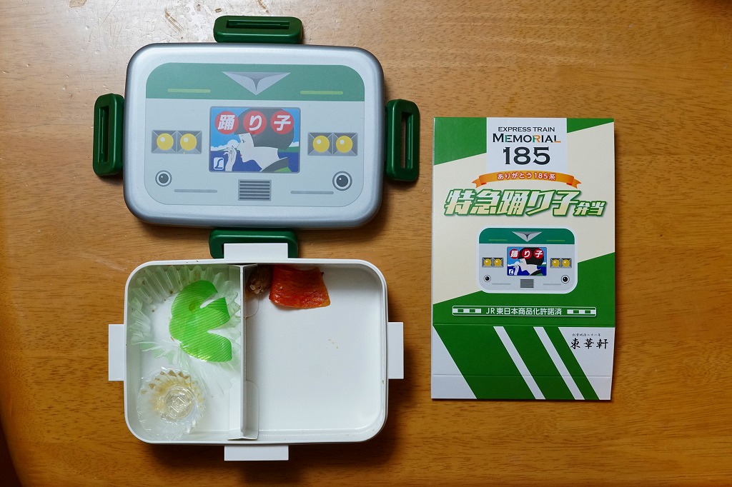 2021(令和3)年3月13日にJR東日本リテールネットが、東京駅の弁当売店「HANAGATAYA」と品川、上野、蒲田の各駅の弁当売店「膳まい」で発売。特急列車ヘッドマーク弁当と同じ形と値段を持つが、このシリーズの弾数に含まれていない。この日のJRグループのダイヤ改正での、特急「踊り子」からの185系特急形電車の引退を記念して発売された。東京と伊豆半島を結ぶ列車のヘッドマークに、ヘッドマーク周りの185系電車の構造を含め、弁当箱の上面に印刷した。