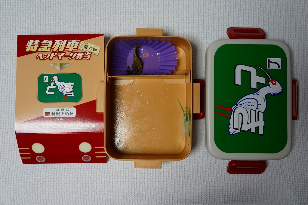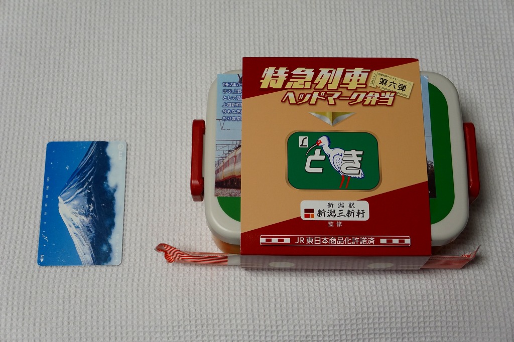 2018(平成30)年7月9日にJR東日本リテールネットが、東京、品川、上野、大宮、蒲田の各駅の弁当売店「膳まい」と新潟駅で発売した、特急列車ヘッドマーク弁当の第6弾。今回は1982(昭和57)年まで上野駅と新潟駅を結んだ在来線特急列車「とき」のヘッドマークの絵柄を、弁当箱の上面に印刷した。
