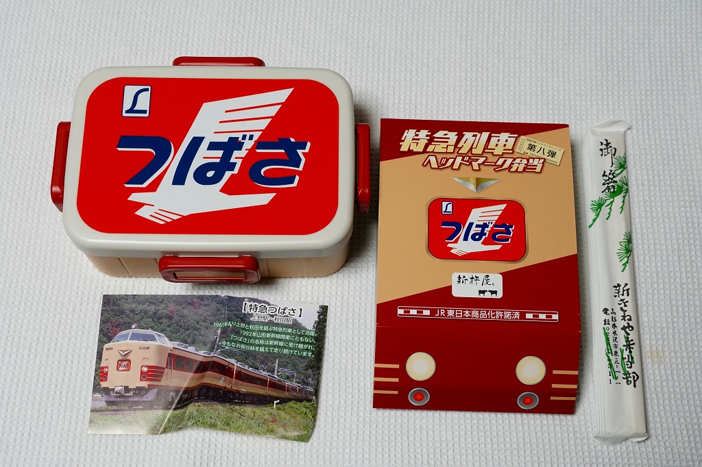 2018(平成30)年11月14日にJR東日本リテールネットが、東京、品川、上野、大宮、蒲田の各駅の弁当売店「膳まい」で発売した、特急列車ヘッドマーク弁当の第8弾。今回はかつて上野駅と秋田駅を結んだ在来線特急列車「つばさ」のヘッドマークの絵柄を、弁当箱の上面に印刷した。