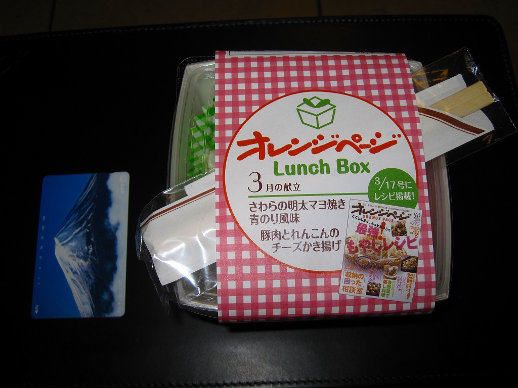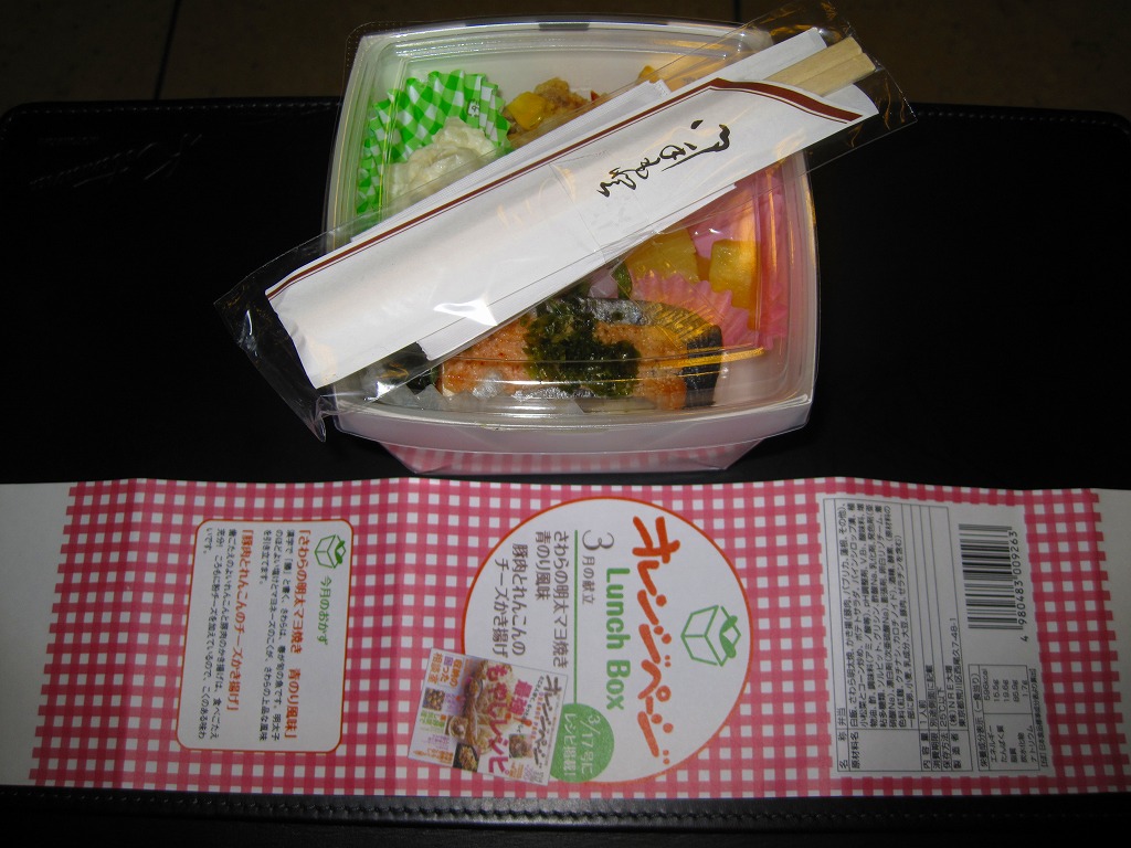 該当の雑誌を読んだことがないので詳細は分からないが、1985年創刊の料理雑誌「オレンジページ」内のレシピ記事と中身が連動しているらしい。だから掛紙には「3月の献立」とあり、以後も毎月新しいものが東京駅などの一部の駅弁売店で売られている。雑誌と同じ名前の発行元である株式会社オレンジページは、2001(平成13)年12月になぜかJR東日本に買収されており、こんなタイアップが可能なのだろう。月替わりで丸1年間販売された模様。