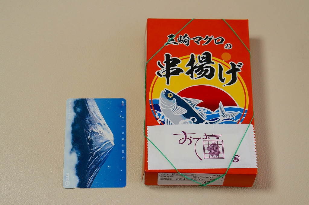 2014(平成26)の3月頃に、東京駅の駅弁売店「駅弁屋 祭」のレジ横でデビューか。商品名のとおり、三崎マグロの細長い串揚げが3本、小柄な容器に横たわる。分量でも価格でも、この売り場で先発の「国技館やきとり」と同じく、駅弁にもう1品加える、買ってもらうための商品か。調製元は大船駅弁の大船軒だが、大船駅で売られることはないと思う。一年半ほどの販売か。