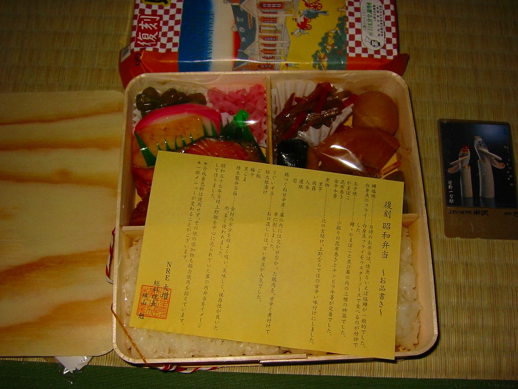 2004(平成16)年4月9日から11日まで、八戸・盛岡・仙台・大宮・東京・新宿・品川・上野の各駅で5,000個を販売した、NRE史上初の「駅弁の日」記念駅弁。東北・上越新幹線が開業した1982年頃の幕の内駅弁を再現したという。