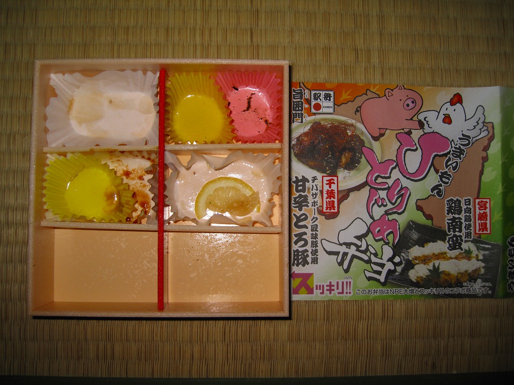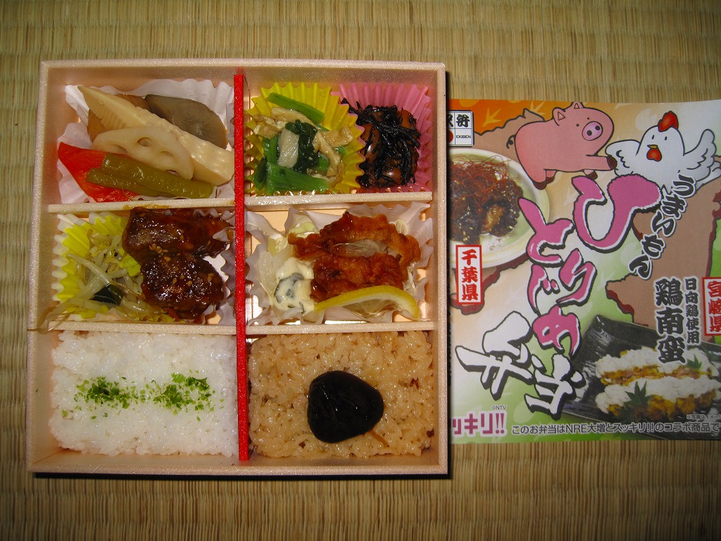 日本テレビの朝の情報番組「スッキリ!!」とNREとの共同開発により、2010(平成22)年10月9日から11日まで東京駅で開催された「第12回東日本縦断駅弁大会」で販売されたお弁当。正方形の容器に、内容をイメージした写真やイラストを掲載する賑やかな掛紙をかける。中身は白飯に茶飯、鶏南蛮に甘辛とろ豚、タケノコやニンジンなどの煮物にひじきや青菜煮浸しなど。