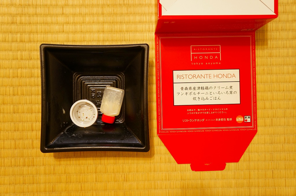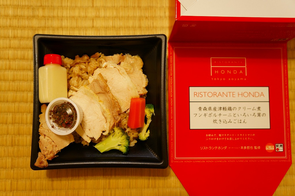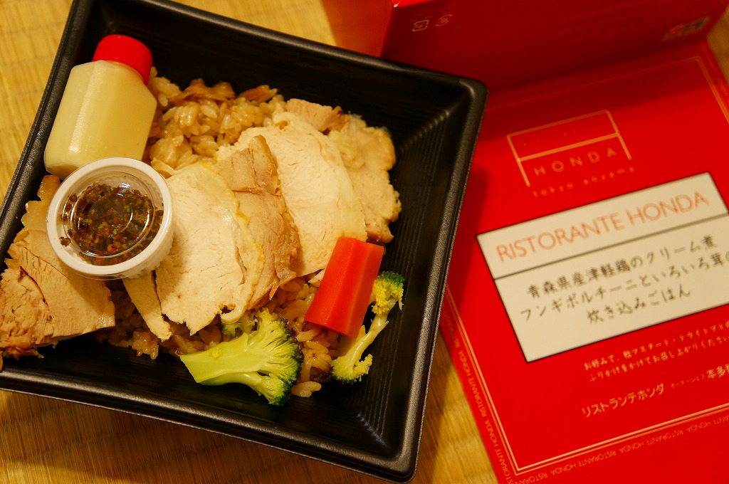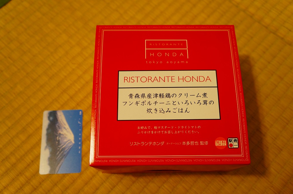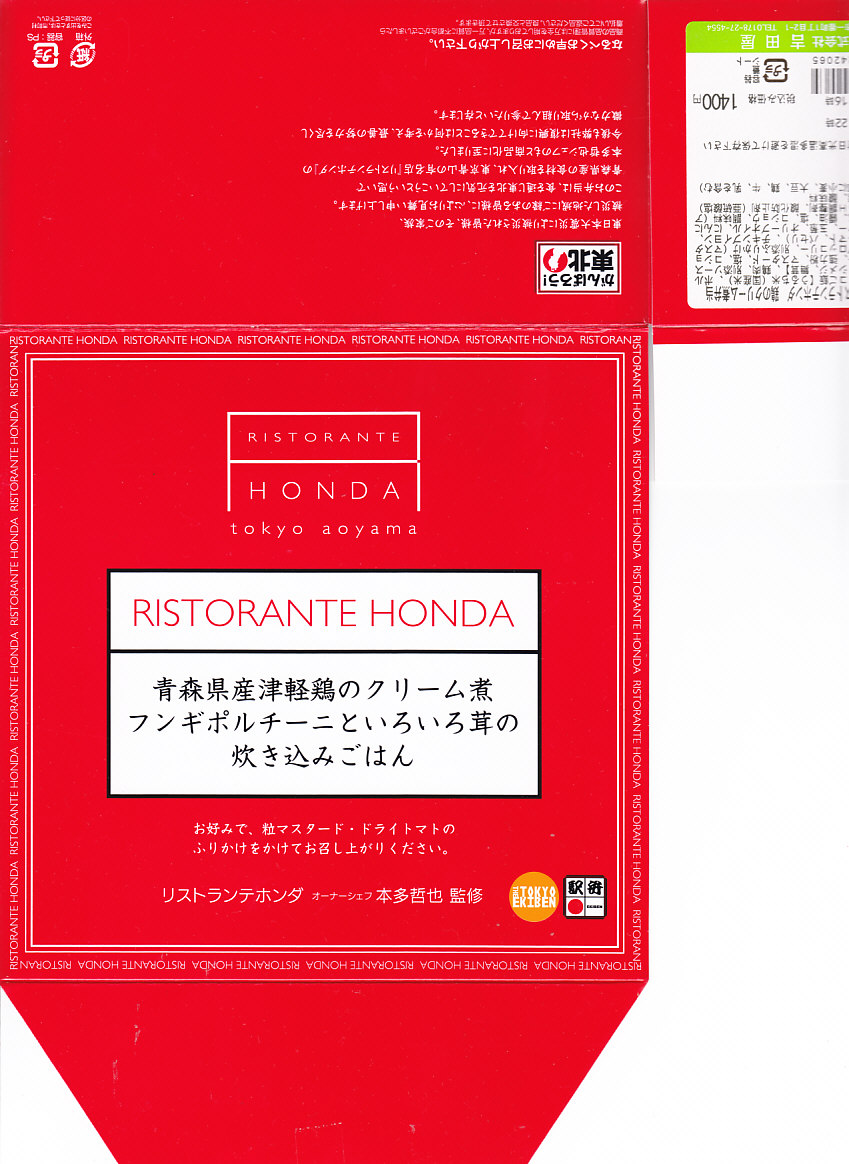 2012(平成24)年4月までに発売か。調製元は下記の商品「リストランテホンダ弁当」ともども、八戸駅弁の吉田屋。グランスタにもたくさんあるデパ地下タイプの高級惣菜弁当で使われているような容器を、ブランド名や商品名を書いた赤い紙箱に収める。