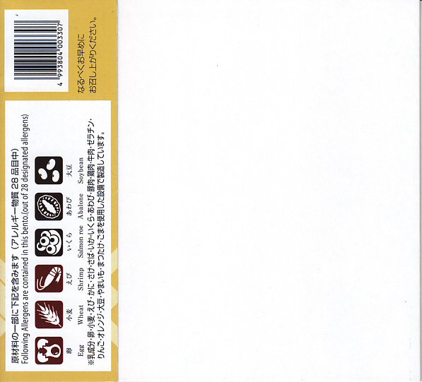 ところでこの掛紙、かつて昭和の国鉄時代に金沢駅弁の個性作であった、同じ名前の駅弁の掛紙がそのまま使われている模様。その証拠に右下の調製元情報には「金沢駅国鉄構内営業中央会」の文字がある。40代以上のごく一部のオールドファンには大変懐かしいものであろう。これも売り場で何の宣伝や解説もされていない。年内に終売か。