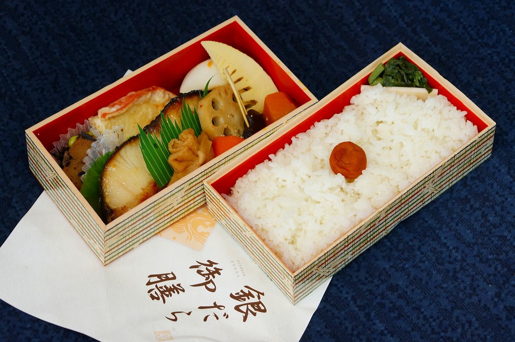 2014(平成26)年10月1日に東京地区で発売。真っ黒な二段重ねの容器の下段は日の丸御飯と菜の花、上段は大きな銀ダラのこうじ味噌焼に、ニンジンやカボチャなどの煮物、パプリカのしんじょう揚げ、ひじき煮など。駅でも売られるでパ地下タイプの高級弁当。2011年発売の「おべんとう魚」と同じく、崎陽軒の弁当なのにシウマイが入らないが、これは話題にはされなかった。