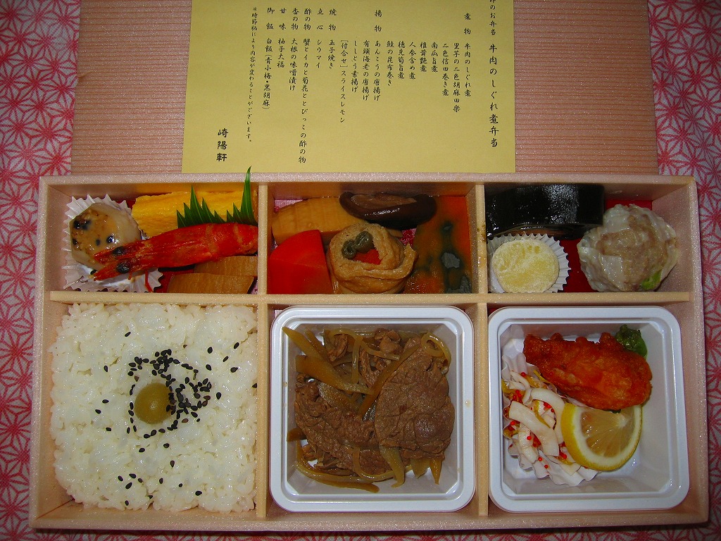 ていねいな盛り付けに感心しながら、出来立てでない常温での風味に、なんとなく物足りなさがある。弁当名に牛肉と付けながら、その分量や風味にパンチ力がない。崎陽軒の駅売り弁当では珍しく掛紙がないことも加えて、なんだか崎陽軒らしからぬ商品だと思った。現存しない模様。