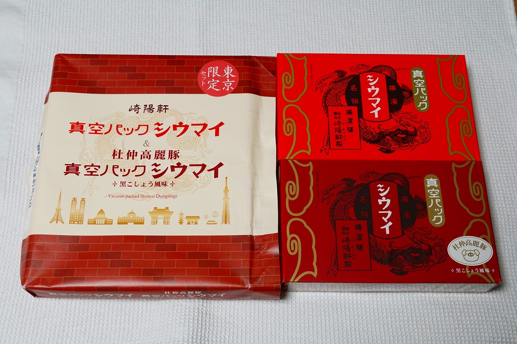 崎陽軒の東京駅「グランスタ」地下1階の食品売り場での店舗の開業を記念し、2018(平成30)年10月1日に「東京限定」で発売。中身や味は、横浜や東京で既存の「真空パックシウマイ」や、横浜中華街の崎陽軒店舗で売られる「真空パックシウマイ」と同じ。これらを1箱ずつ、まとめて専用の包装紙で包んだ。常温で売られ、4か月ほど保存が利く土産物。