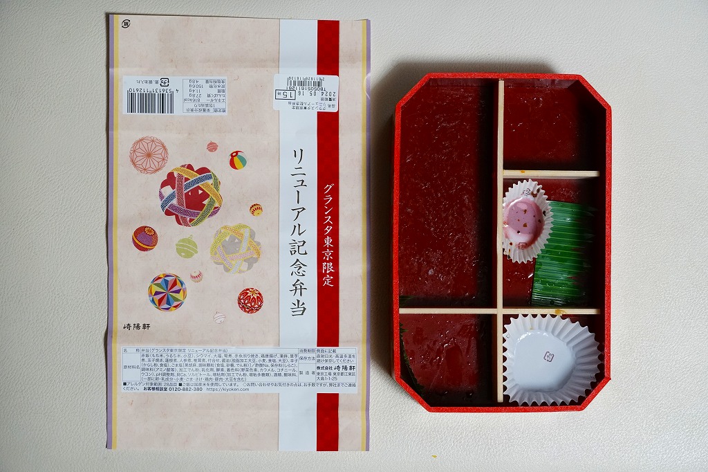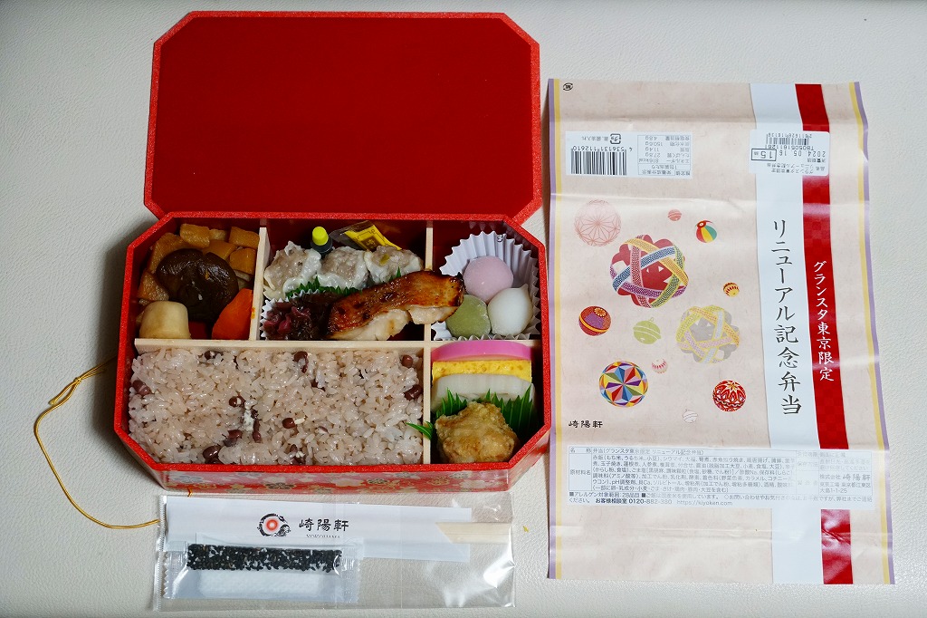 東京駅構内の商業施設「グランスタ」の、改札内地下1階「スクエアゼロエリア」のリニューアルオープンに合わせて、2024(令和6)年4月24日にエリア内の調製元店舗で発売、ゴールデンウィーク期間中を除く5月末まで販売。2018年10月にここへ後から入居した崎陽軒は、このリニューアルでメインの通りからエスカレーター下で天井の低い、倉庫にするような場所へ追いやられてしまったが、その知名度により客はちゃんと来ていた。