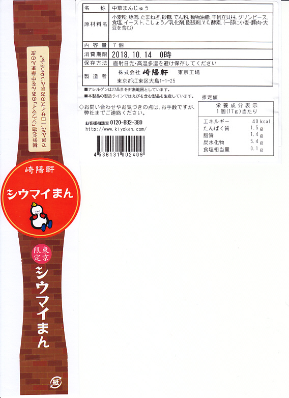 崎陽軒の東京駅「グランスタ」地下1階の食品売り場での店舗の開業を記念し、2018(平成30)年10月1日に「東京限定」で発売。中身や味は横浜で既存の「シウマイまん」と同じ。7個の焼き印が「東京」や「TOKYO」になり、容器がコーヒーやスイーツで使われるおしゃれなものになり、これに商品名や食品表示のラベルを貼った。シウマイを饅頭の皮で包んだ、奇抜な軽食。