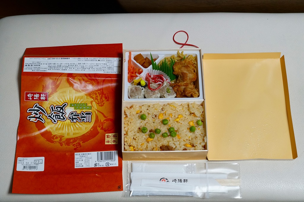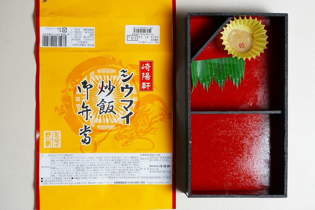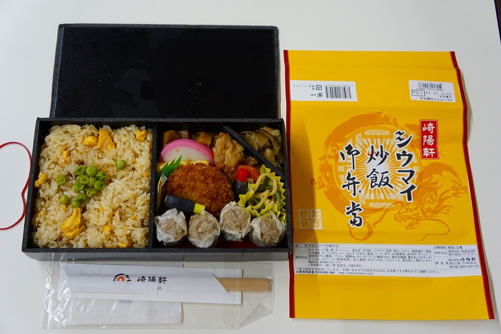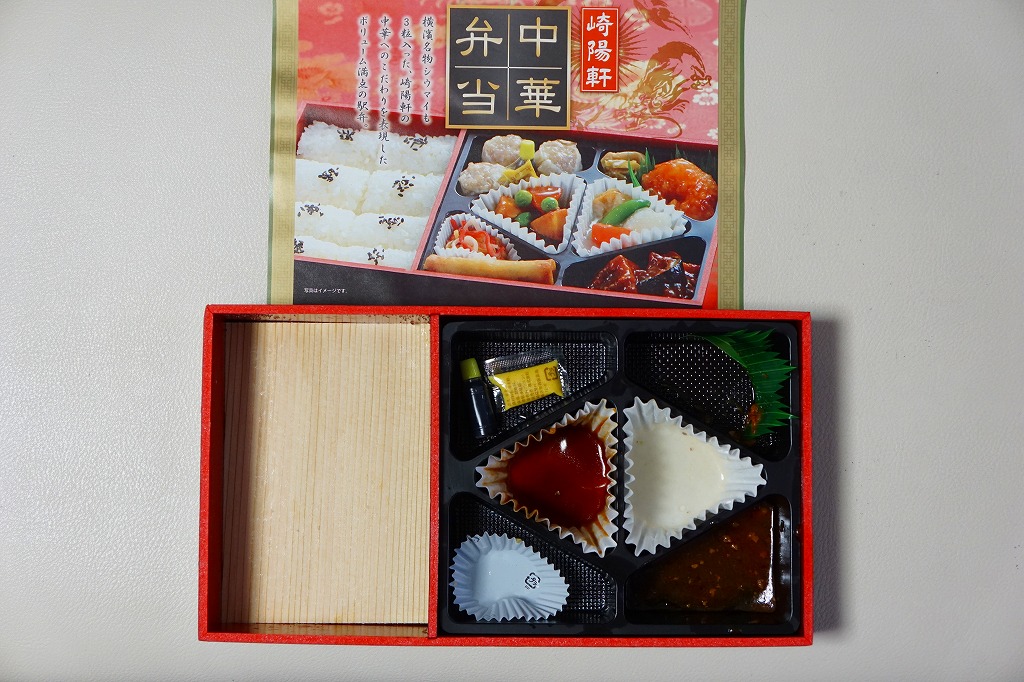 中身がとても分かりやすい中華弁当だが、見栄えと食感は横浜駅の「横濱中華弁当」や昔のNRE「東京中華」と比べてかなり落ちる感じ。崎陽軒ブランドが前面に出ないのは、ここでは幸いだったかもしれない。