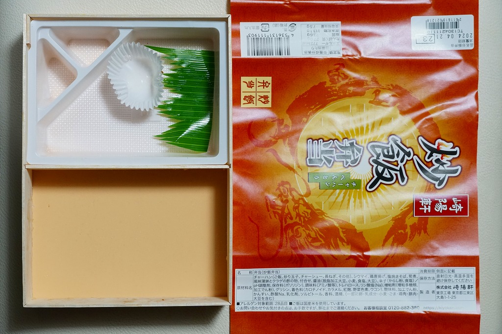 これは5年前に買った下記の駅弁「中華弁当」の現況、と言いたいところだが、普段の東京駅ではNREの駅弁売店で崎陽軒の弁当は買えず、リテールネットの「膳まい」ではシウマイ弁当のみを取り扱うため、この弁当は駅弁ではなくデパ地下弁当だと思う。崎陽軒東京工場製の弁当として、都内のデパ地下の崎陽軒売店ではいつでも買える。