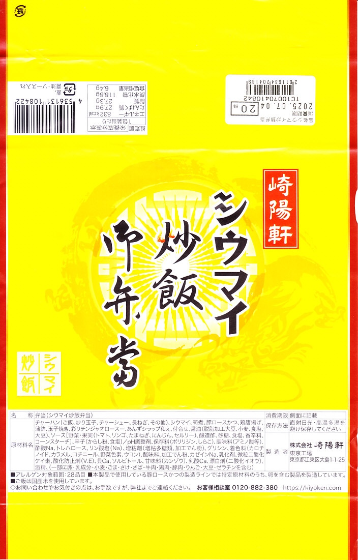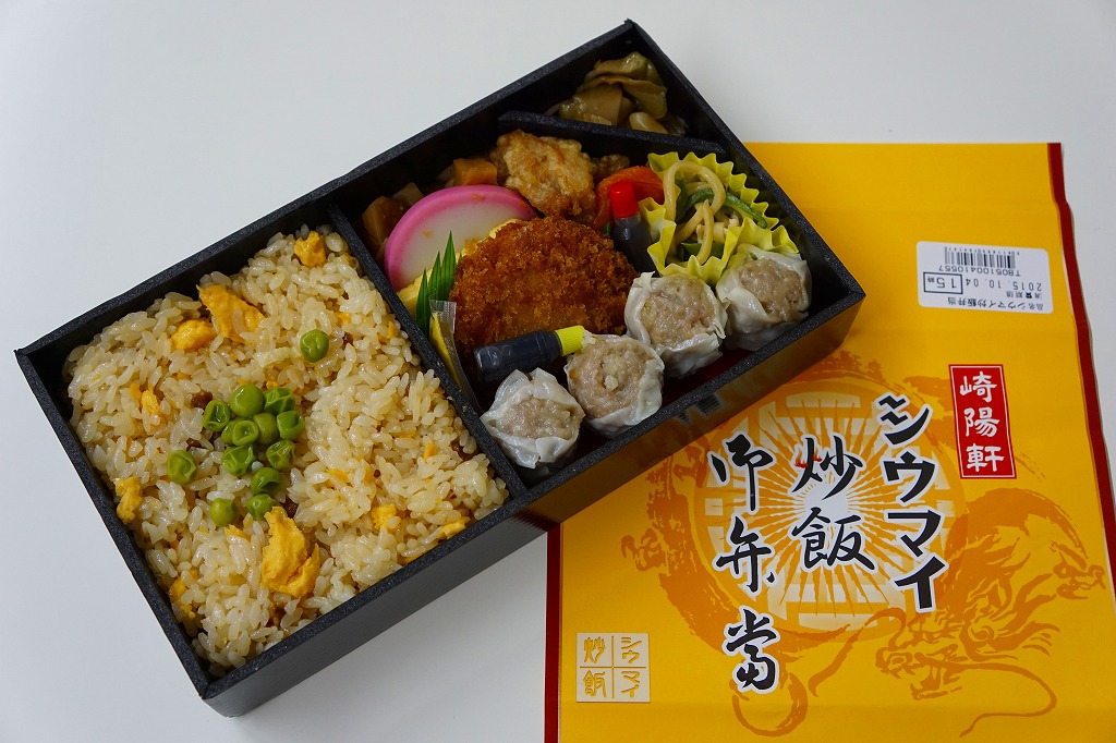 公式サイトへの掲載や他の崎陽軒売店での販売がないまま、東京駅の駅弁売店「駅弁屋 祭」で、2015年の秋に突然に登場した、崎陽軒東京工場製のお弁当。中身は炒飯、とんかつ、鶏唐揚、かまぼこ、玉子焼、タケノコ煮、チンジャオロース、ザーサイ、あんず、シウマイ4個。横浜駅弁の崎陽軒の名物駅弁に入る具がいろいろ組み合わされており、もちろん味も同じ感じ。