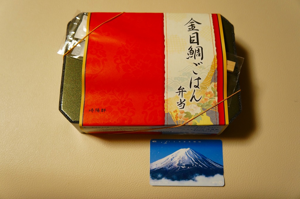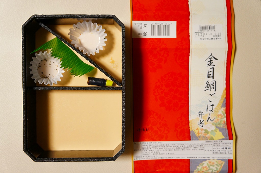 2015(平成27)年12月1日から2016(平成28)年2月29日まで、東京地区と一部横浜地区で販売。ちょっと贅沢なひとときを楽しむ「旬彩弁当シリーズ」の、同年9月から11月までの「松茸ごはん弁当」(1,080円)に続く第2弾。真っ黒な弁当箱に、暖かみがある絵柄の掛紙を巻く。