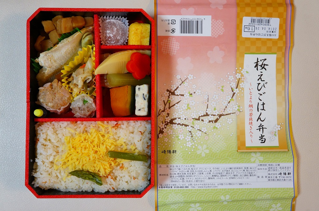 春季限定の駅弁として、2014(平成26)年3月1日から5月6日まで、東京地区と一部の横浜地区で販売。中身はサクラエビとグリーンピースの炊込飯、タイ若狭焼、タケノコやカボチャやフキなどの煮物、タケノコ煮、タケノコとセリのおひたし、玉子焼、桜あん水まんじゅう、シウマイ1個と桜えびシウマイ1個など。