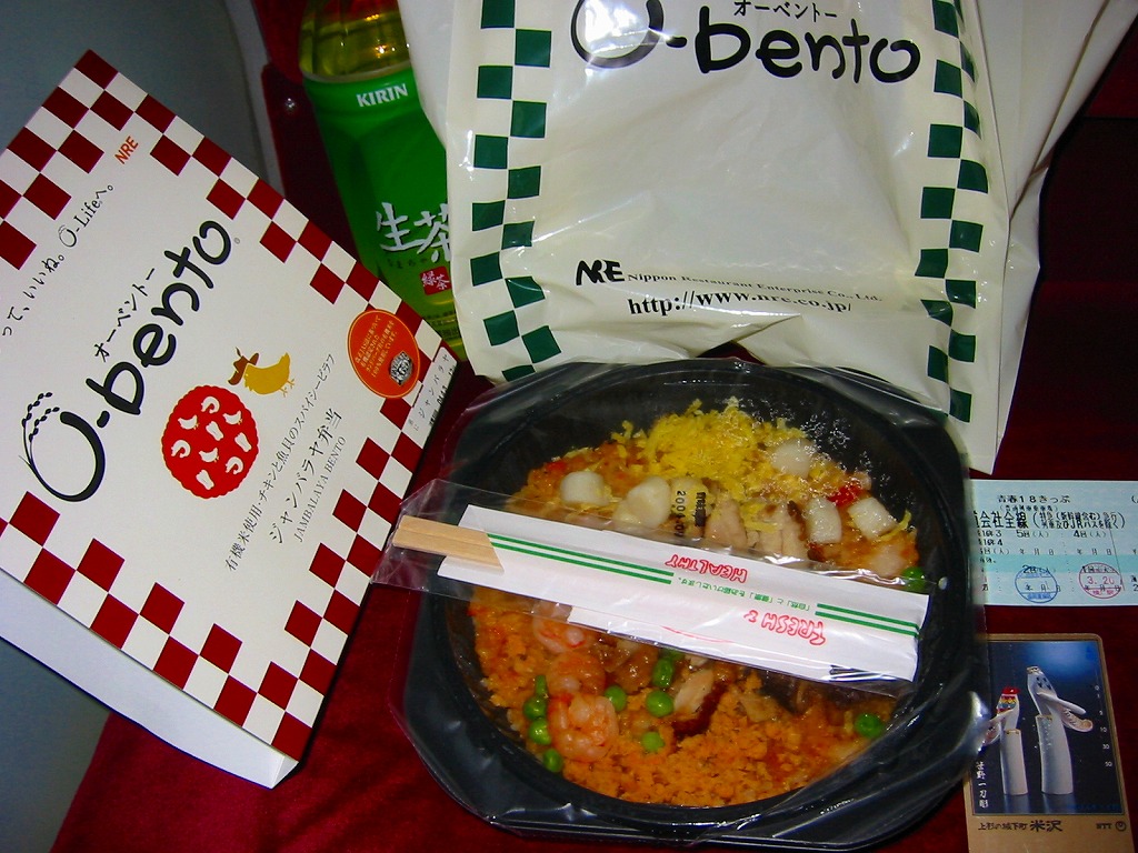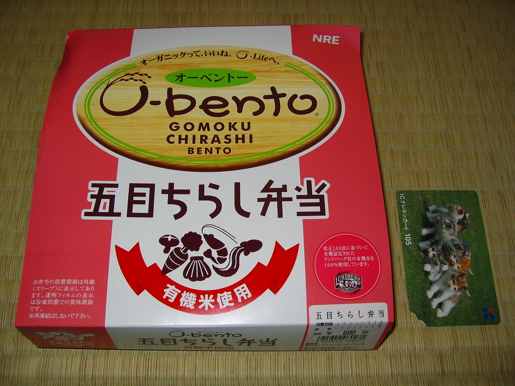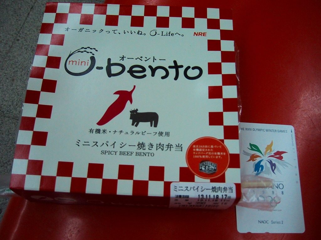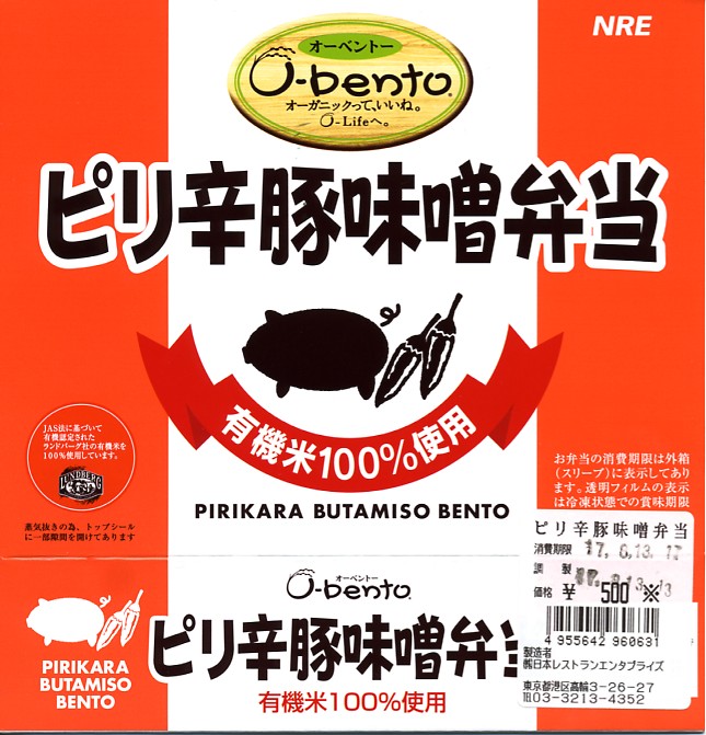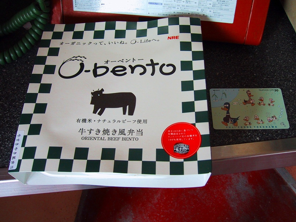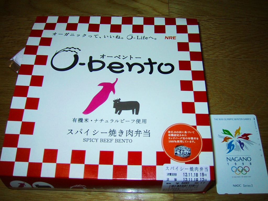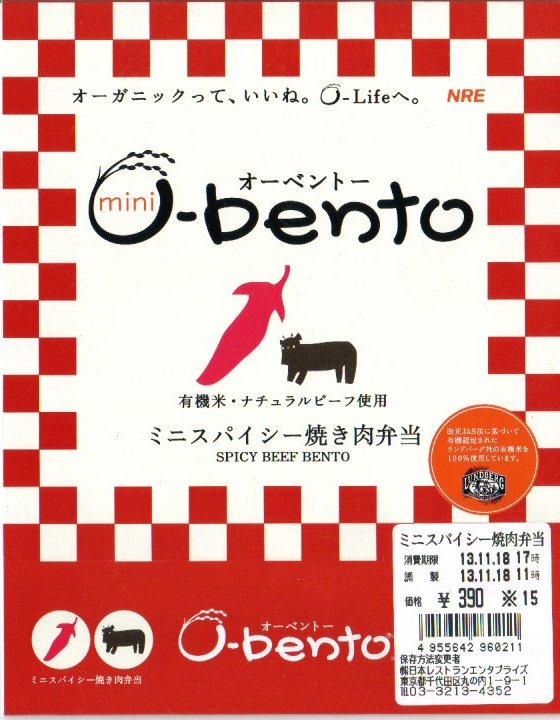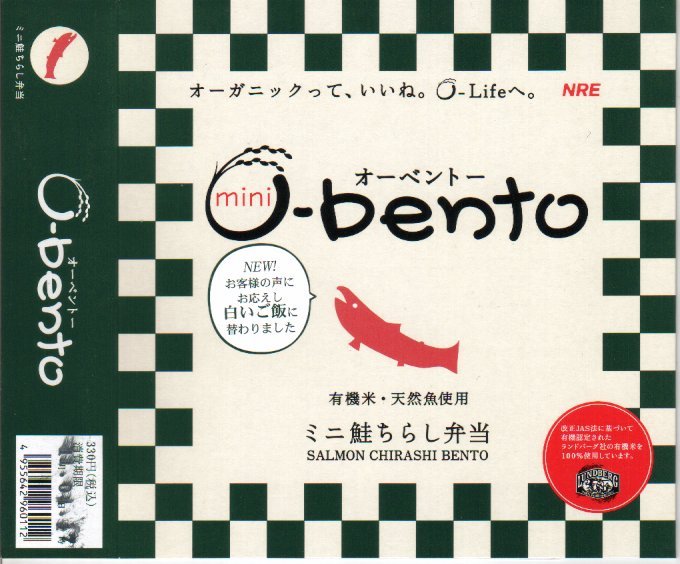 この時点でのO−bentoは「豚生姜焼き」「ピリ殻豚味噌」「マス西京焼き」「焼き鳥丼」「カレー風味チキン照り焼き」とこれの6種類。JR東日本の新幹線の一部車内でも販売されているそうで、座席で食べたら車内へ盛大に臭いを振りまきそうな気がするが、まだ目撃できていない。2007年中にシリーズそのものがなくなった。
